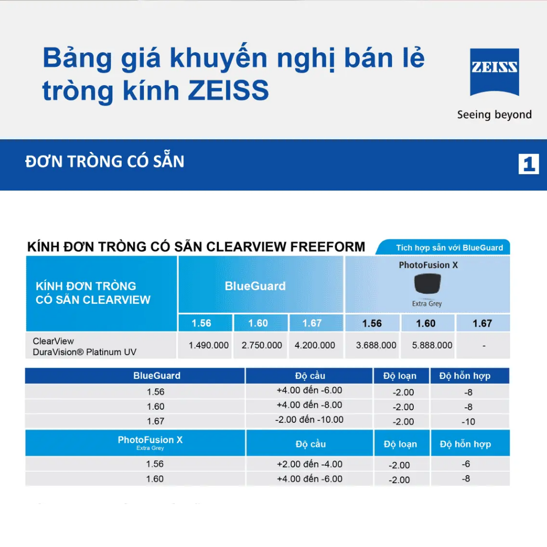 1. Thông Tin Sản Phẩm – Zeiss ClearView PhotoFusion X (Thế hệ 2023)