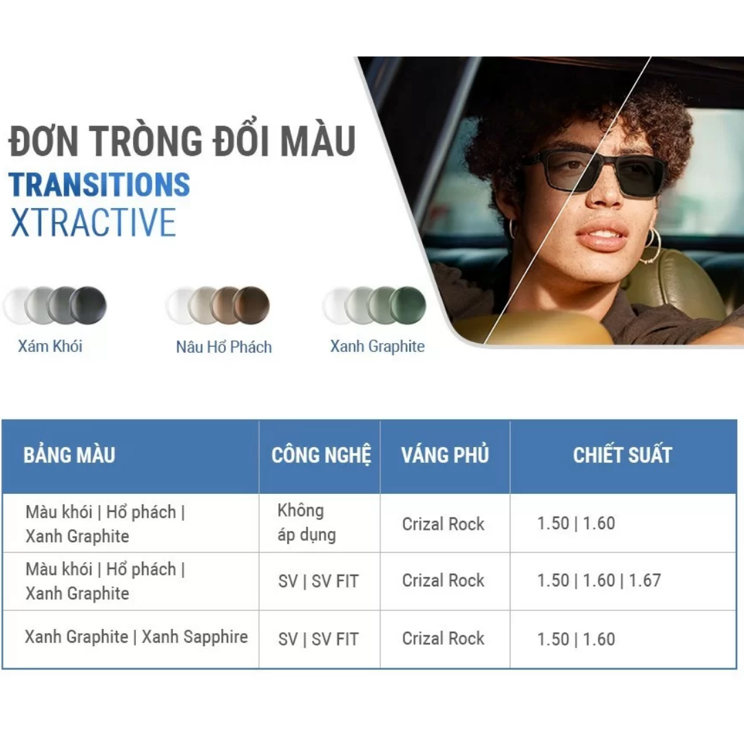 Không giống các tròng đổi màu thông thường, XTRActive có khả năng phản ứng mạnh hơn với ánh sáng, giúp giảm chói và tăng sự thoải mái cho mắt trong nhiều môi trường sử dụng khác nhau.